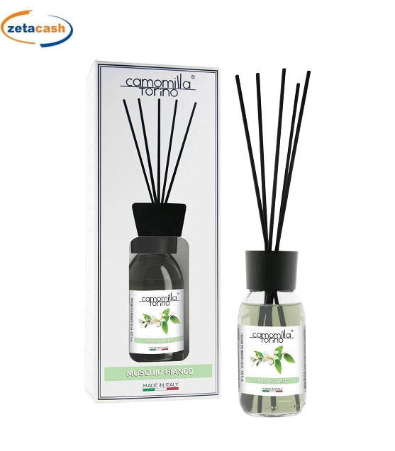 Diffusore per ambiente con bastoncini in legno. Fraganza muschio biancoi.